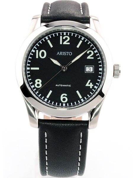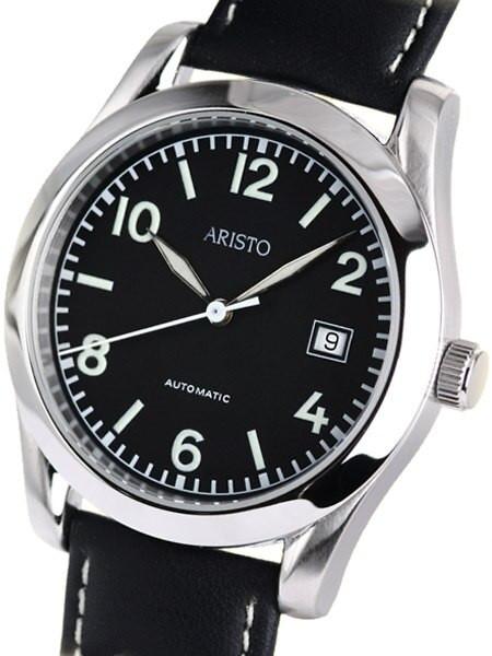 Nice watch for those who want a timepiece that is super comfortable on the wrist, and a super affordable German watch, with true German heritage. This Aristo features a polished stainless steel 40mm case with an exhibition back that allows you to view the automatic (self winding) movement. The hour, minute hands and the numbers and markers are all treated with SuperLuminova for excellent glow in the dark visibility. An outlined date window is visible at 3:00 and the push-pull crown allows easy time setting. Comes with a high grade black leather strap with white contrast stitching for a refined look.