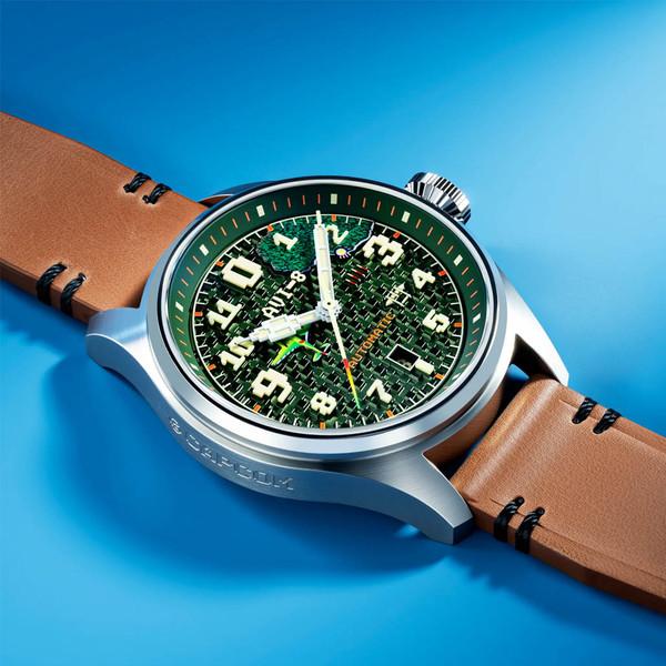 AVI-8 teams up once again with gaming legend Capcom® to celebrate the iconic 1942™. This limited edition timepiece brings the classic 8-bit battlefield to life with a 3D pixelated dial, capturing the spirit of the original shoot-’em-up.