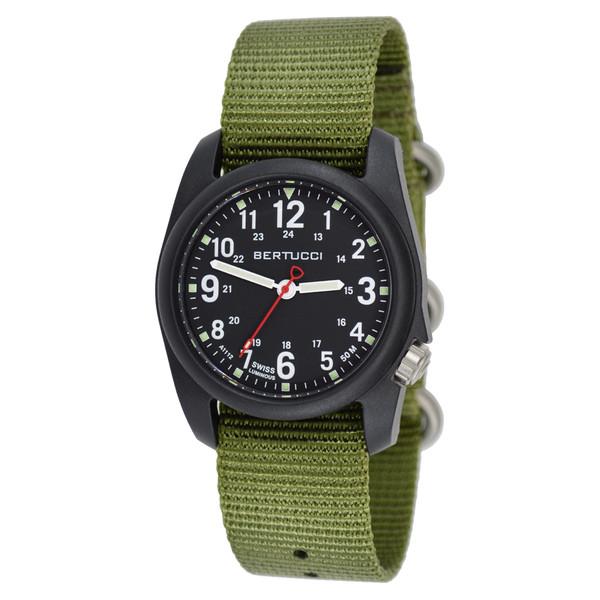 Bertucci DX3 Field Poly Resin Watch, Olive Green Nylon Strap, Black Dial - 11016