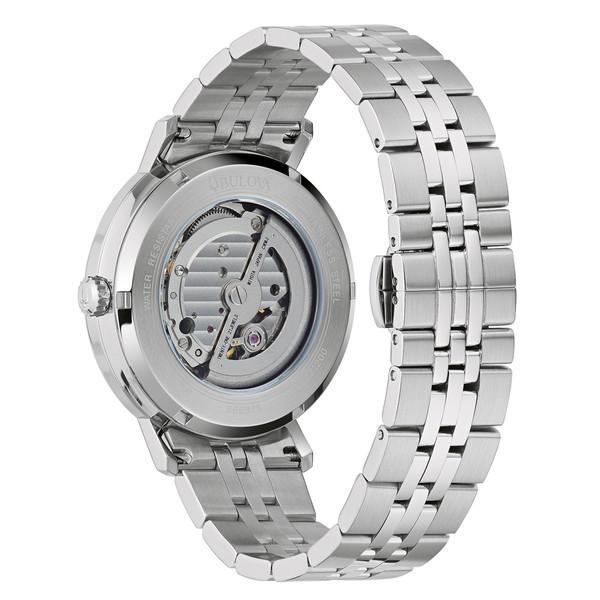 Bulova’s new automatic models in the Aerojet line bring a contemporary flair to this classic luxury watch inspired by vintage timepieces. The Aerojet has a 41mm stainless steel case that is fully polished and has a screwdown caseback with a mineral crystal exhibition window through which one can see the automatic mechanical movement. At just 12.3mm thick and with a sub-50mm lug-to-lug, this vintage-inspired case is sure to wear well on any wrist. The domed mineral crystal adds to the timeless aesthetic, while the matching multi-link stainless steel bracelet with its push-button deployant clasp provides a sporty look.
