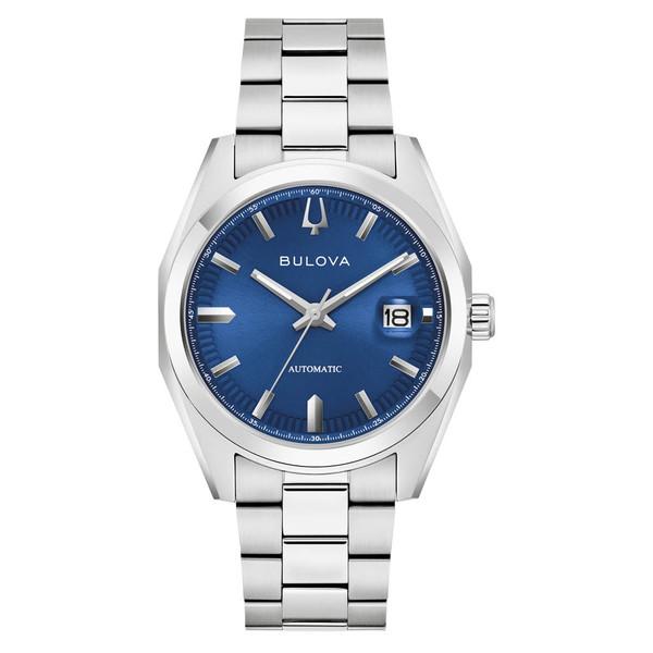 The Bulova men’s Surveyor is defined by exceptional quality and sophisticated aesthetics. The silver-tone stainless steel case features sculpted edges and faceting which provide an effortless wear on the wrist, with polished and brushed finishing, a flat sapphire crystal, and a matching quick-release 3-link stainless steel bracelet with a push-button deployant clasp. The vibrant blue dial has a sunburst finish and features silver-tone accents, hands with luminescent fill, debossed minute markers, and a magnified date display. The watch is powered by an automatic movement with 21-jewels and a 42-hour power reserve, which can be seen in full through a mineral crystal exhibition window in the caseback. For those with a discerning eye for refined luxury, this Bulova men’s timepiece is the obvious choice.