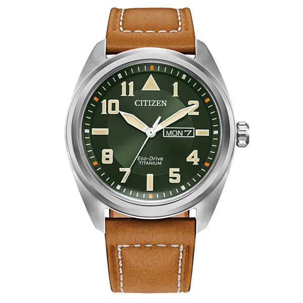 Citizen Eco-Drive Garrison Titanium Watch with Green Dial and Leather Strap #BM8560-02X