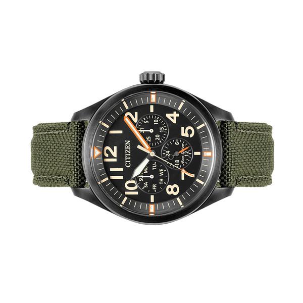 Citizen Eco-Drive Garrison Watch with Black Dial and Green Cordura Strap #BU2055-16E