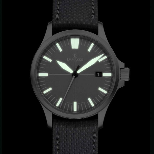 The DS30-Grey gives you the Damasko German quality and design in a new smaller sized 39mm case. The case is made from bead-blasted submarine steel with surface hardening, making it scratch and corrosion resistant. The thickness is just a tad under 10mm so it should slide under your shirt cuff with ease.
