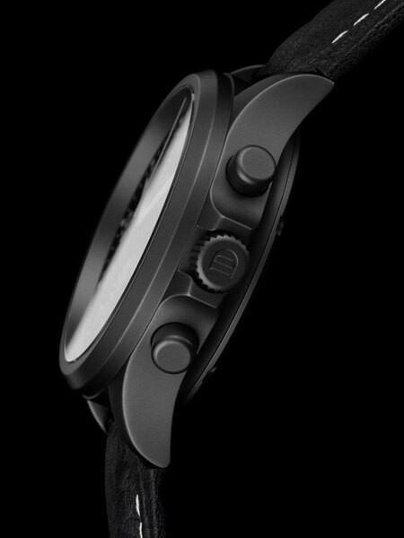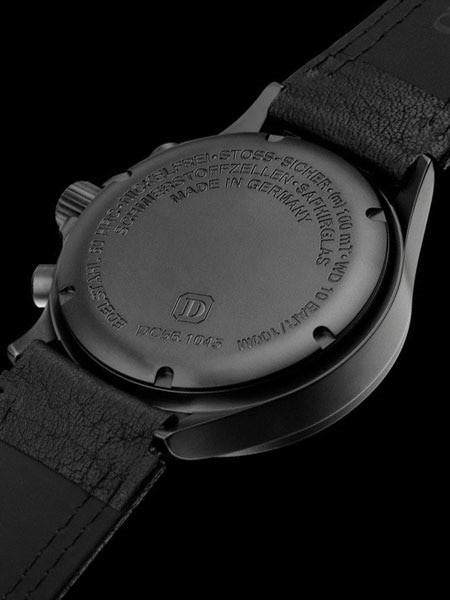 The DC56BK is a Swiss Valjoux 7750 powered chronograph watch with a 60-minute stopwatch and a 12-hour totalizer function. The black ion plated case size is 40mm diameter x 13.80mm thick. The case is bead blasted, hardened and finished with an abrasion-resistant Damest coating. It is also made with ice-hardened stainless steel. There is an integrated anti-magnetic inner cage to guard against the movement becoming magnetized.