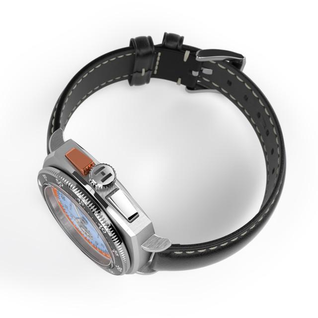 Hemel introduces the Sky Racer automatic chronograph as part of its HF series of watches. Featuring a cushion case with angled pushers, for a sporty look. features a 120 click uni-directional ratcheting bezel, topped with a lumed ceramic insert.