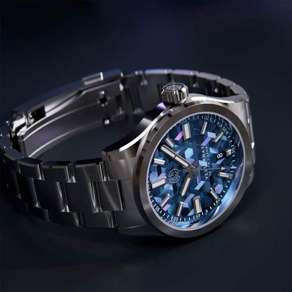 We've put in a lot of effort to establish a noticeable contrast between the polished and brushed steel elements of the watch. This contrast is evident along the polished chamfered edges on the bracelet, bezel, and lugs.