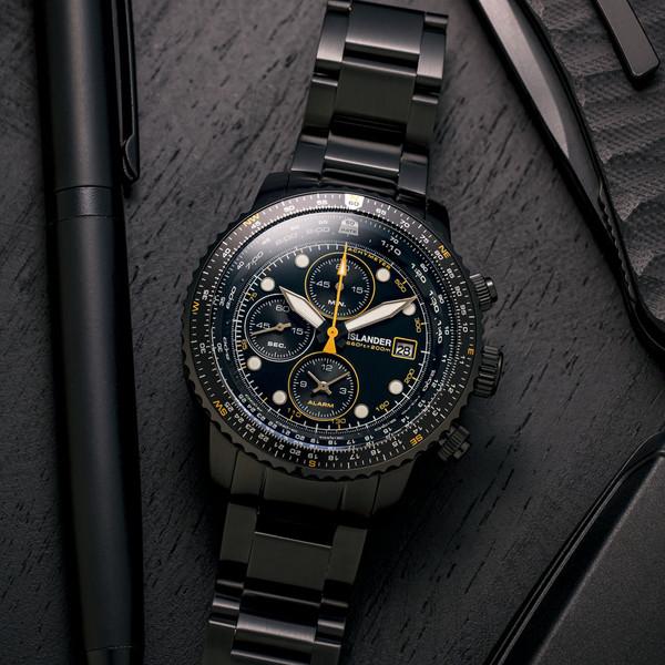 Islander Calverton Flight Chronograph Alarm Watch in IP Black #ISL-326
