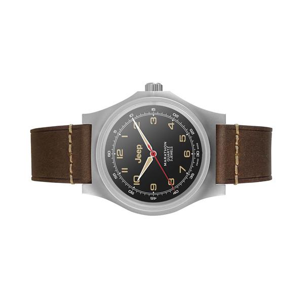 The 41mm Jeep® Willys SSGPQ takes inspiration from both Jeep and the original Marathon field watch issued in 1941, developed for use by infantry and officers during ground operations. This Swiss-made field watch is designed for ultimate precision, featuring an ETA F06.402 movement with an accuracy of ± 10 seconds per year.
