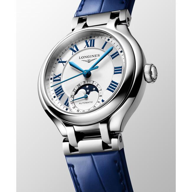 LONGINES PRIMALUNA MOONPHASE, L8.126.4.71.2, automatic watch, Ø 34.00 mm, stainless steel.