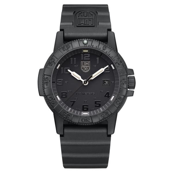 The Luminox Leatherback Sea Turtle watch gets its name from the design of the watch, the classic Luminox case with the protected crown balanced by an opposite outcropping, resembles the shape of a turtle. Featuring a 39 mm CARBONOX™ case and water resistance up to 100 meters, this black-in-black dial is contrasted by white hands. As always, this watch is equipped with the proven Luminox Light Technology lighting system.