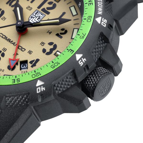 The Commando Series from Luminox is designed to pay homage to military units all over the world. Developed with military and law enforcement experts, the Commando Series meets the needs of active professional military and police personnel, as well as adventure lovers who want a reliable, versatile, and precise analog watch. Featuring a beige dial, black numerals and hands, and a standout red GMT function, this watch is the perfect companion for any activity.