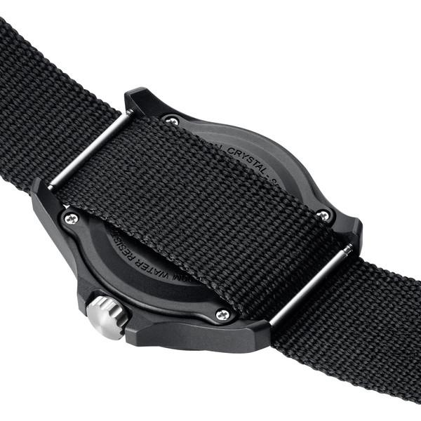 The Green Shield collection is inspired by the adventurous spirit of its namesake. A classic timepiece combining rugged yet simple styling with a clean modern look. Housed in a 43mm CARBONOX™ case, it is water resistant to 100 meters. The black dial features instantly-readable white numbers and comes with a black R-PET belt strap adorned with a stainless steel signature buckle. This watch is equipped with the proven Luminox Light Technology lighting system. "Always Visible", self-powered, for up to 25 years.
