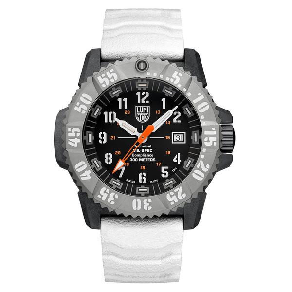 Mil-Spec (short for Military Specification) refers to the military standard from the U.S. Department of Defense. The Luminox MIL-SPEC 3359 with a lightweight yet ultra-durable CARBONOX™+ 46mm case, Grade 2 Titanium bezel, and 300-meter water resistance, meets these rigorous technical standards and thrives in the world’s toughest conditions. Inside, the Swiss-made ETA F06.412 quartz movement with HeavyDrive and PreciDrive ensures precision and reliability, even under extreme impact or temperature change. The bold white strap and bezel markings offer an arctic-ready aesthetic, while the large orange second hand with SuperLumi-Nova coated arrow-tip, plus Luminox Light Technology, ensure unmatched visibility in all light conditions. Delivered as a set with an additional black webbing strap, this battle-tested timepiece offers both performance and versatility. Built to the technical compliance of MIL-PRF-46374G Type III Class 1, the XL.3359.SET is trusted by professionals and built for those who never back down.