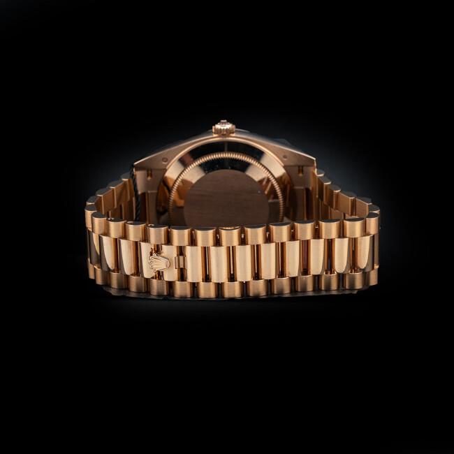 This watch features a 40mm 18 kt everose gold case on 18 kt everose gold bracelet. This watch also sports a white dial. Powered by a perpetual, mechanical, self-winding movement. Water resistance up to 100 meters.