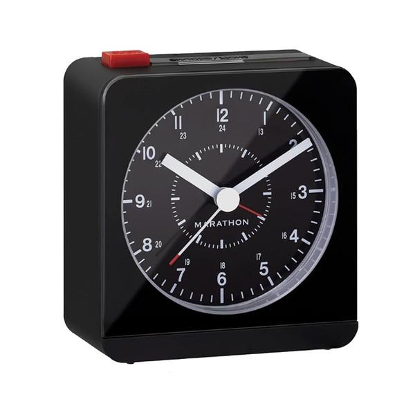 Marathon Alarm Clock with Black Case and Black Dial, Silent Movement, and Auto-Sensing Night Light #CL030053-BK-BK-NA
