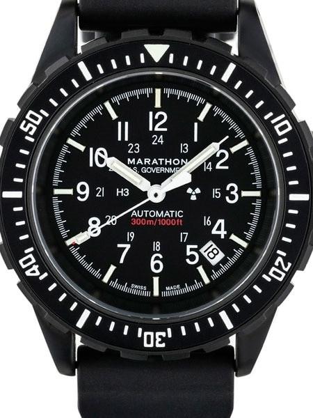 The Marathon Divers Automatic WW194006BK is a dive watch built to ISO 6425 standards. Note: This model has U.S. Government Markings on the dial.