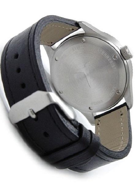 Band:Black leather strap with rivet, buckle closure. 20mm