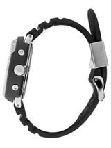 The all-black aesthetic looks striking on the wrist and fastens comfortably by a soft black matching silicon strap. The case of the SNJ025 watch measures to 47.5mm in size, a slight increase from the original, and it is crafted from polished stainless steel. The largest difference between the new Seiko SNJ025 Solar Arnie and the original is the movement. The H558 model was powered by a standard quartz calibre whereas this new Seiko Arnie watch is equipped with Seiko’s famous Solar H851 movement with a six month power reserve when fully charged (by strong light). The H851 movement equips the timepiece with chronograph function, alarm, calendar and dual time. The functions are presented beautifully beneath hardlex crystal glass by a digital display and luminous hands and indices.