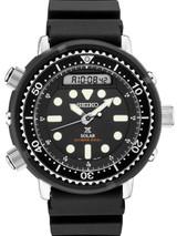 This incredible Prospex Divers Solar SNJ025 watch is a reissue of a cult classic originally known as the Seiko H558 watch that was first introduced in 1982. At the time, it was considered the world’s first hybrid diver watch. But, it was also famous for being the exact watch Arnold Schwarzenegger personally owned and wore in many of his 1980’s movies including Commando and The Predator. So, this new model has been nicknamed, the Seiko ‘Arnie’ watch as part of the Prospex Divers collection which follows closely the same design style as its early counterpart.