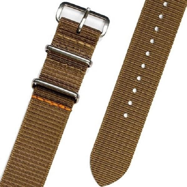 Coyote Color Nylon with 316L grade stainless steel buckle and keepers. The ADPT Strap is based on a military design that features a security-band underneath, ensuring that your watch stays on should a spring bar fail. Made in America.