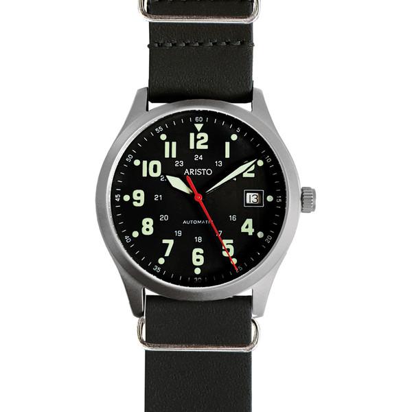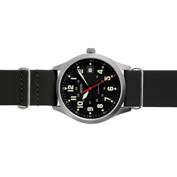 Aristo 38mm Navy Style Swiss Automatic Watch with Black Dial #3H221