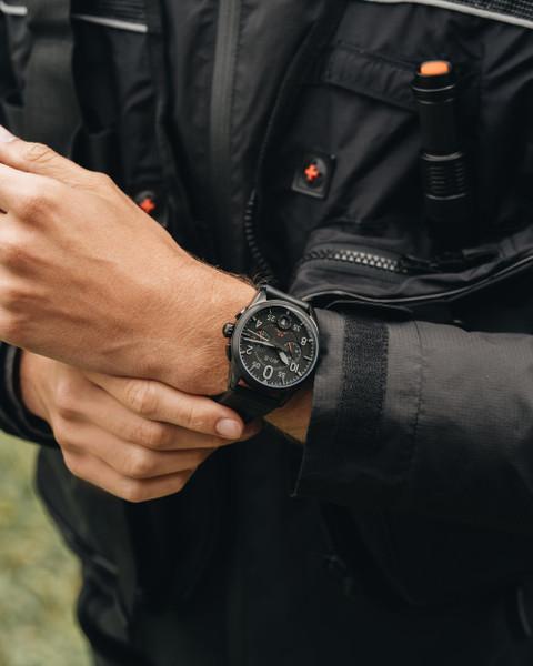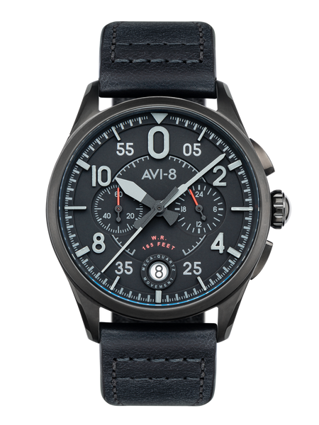 AVI-8 Spitfire Lock Chronograph - Slate Black, Japanese Meca-Quartz Chronograph, Black Dial, Leather Strap #AV-4089-03