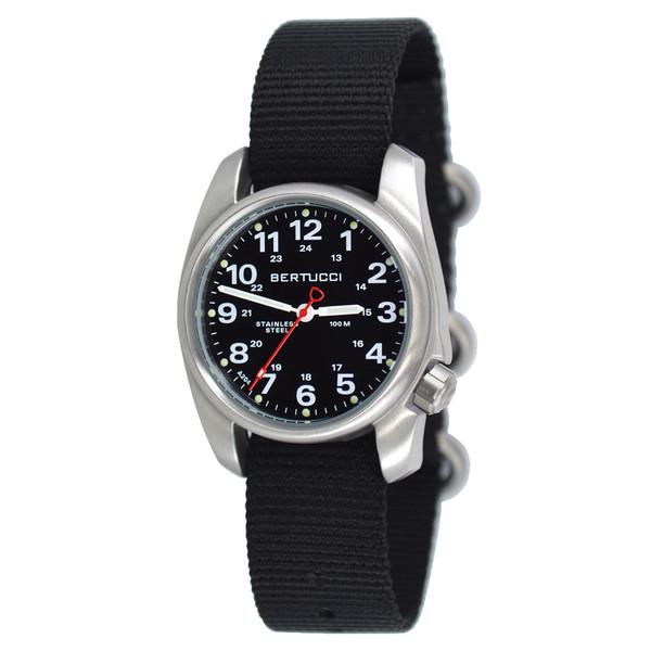 Bertucci A-1S Black Dial Stainless Steel Watch with Black Nylon Strap #10004