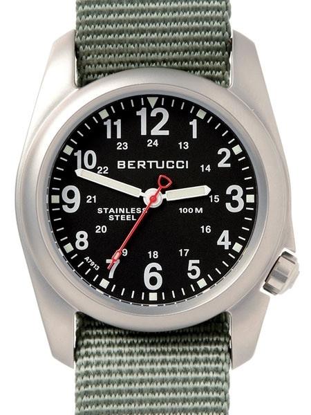 Bertucci A-2S Black Dial, 40mm Stainless Steel Watch with Defender Drab Nylon Strap #11051