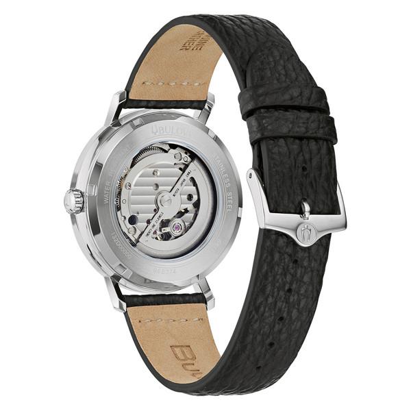 Bulova’s new automatic models in the Aerojet line bring a contemporary flair to this classic luxury watch inspired by vintage timepieces.  The Aerojet has a 41mm stainless steel case that is fully polished and has a screwdown caseback with a mineral crystal exhibition window through which one can see the automatic mechanical movement. At just 12.3mm thick and with a sub-50mm lug-to-lug, this vintage-inspired case is sure to wear well on any wrist. The domed mineral crystal adds to the timeless aesthetic, while a supple black leather strap provides a rich elegance.