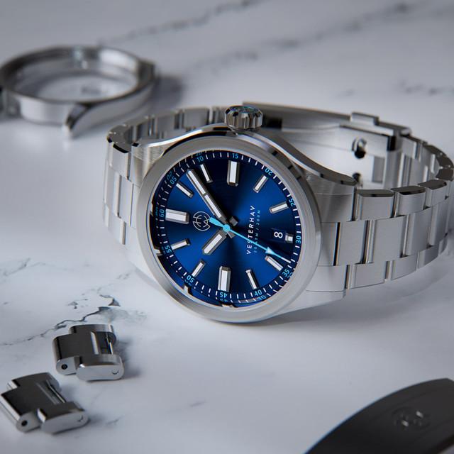 With its rounded lugs and the ultra-comfortable Trinity Grey EVO steel bracelet (exclusive to VESTERHAV), the watch follows the contours of the wrist, resulting in an elegant and classic appearance. The bracelet comes with our fully milled signature clasp with on-the-fly micro-adjust. Perfect for the warm summer days when the wrist expands through the day. Additionally, the built-in quick-release pins allow you to easily switch the bracelet with a rubber or leather strap, providing a completely new look.